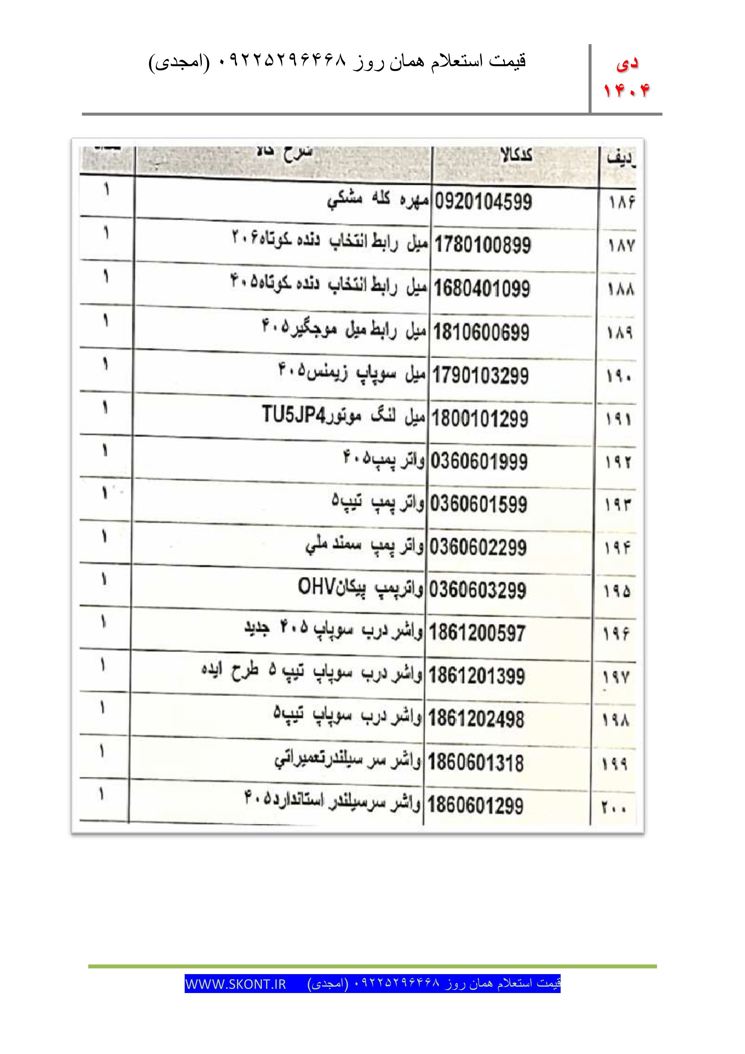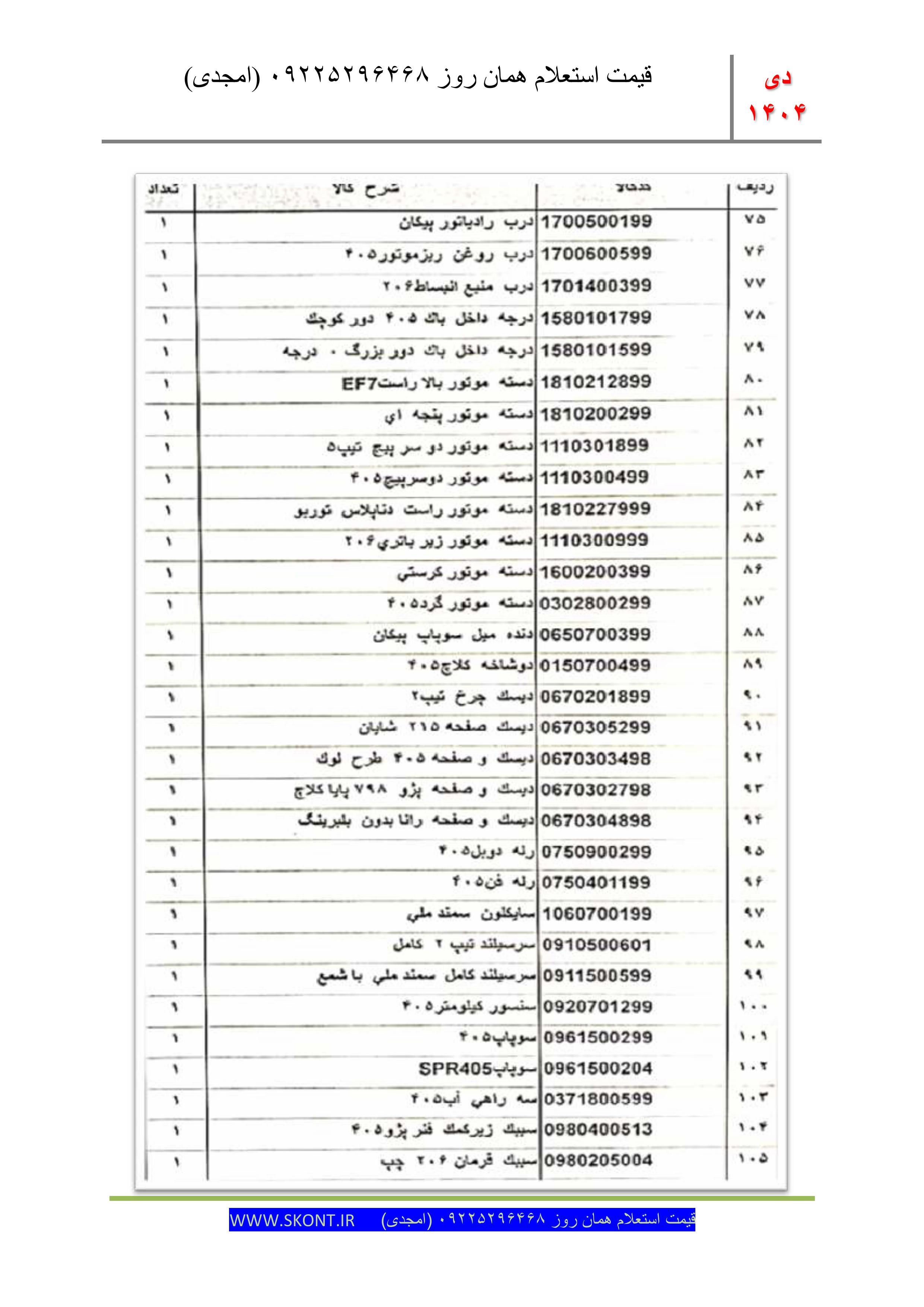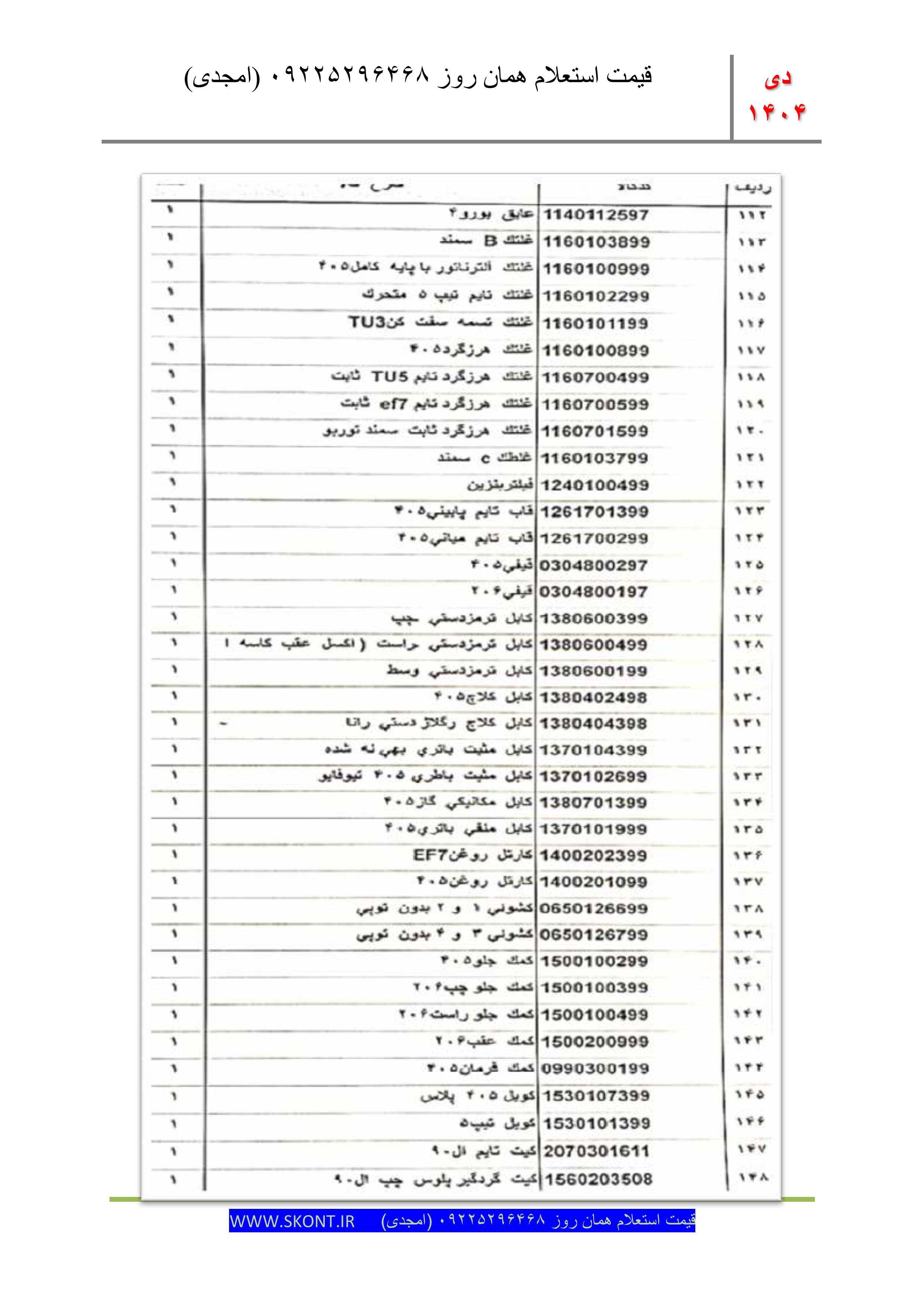 ایساکو 1 دی 1404 پرتخفیف (استعلام قیمت همان روز) 09225296468منتشر شده در 1404/09/30405سمند206ایساکواسکونتskont